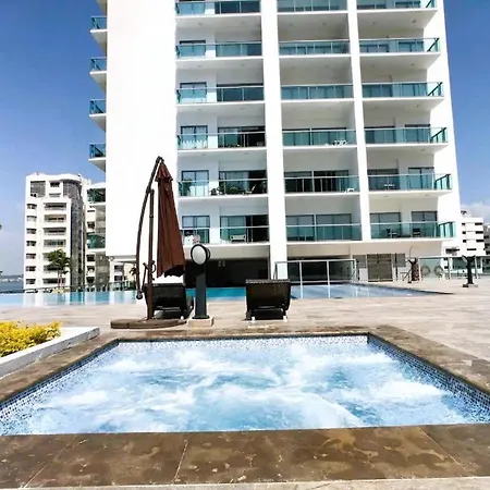 19Th Floor Luxury Apartment Bay View Cartagena, situado a una distancia de 2 km del Museo de Arte Moderno de México, ofrece instalaciones de spa, incluyendo solárium, un jacuzzi y sauna. La Plaza de Las Bóvedas se encuentra a unos 3 km y el Centro Comercial La Mansión está cerca del apartamento de 97 m².